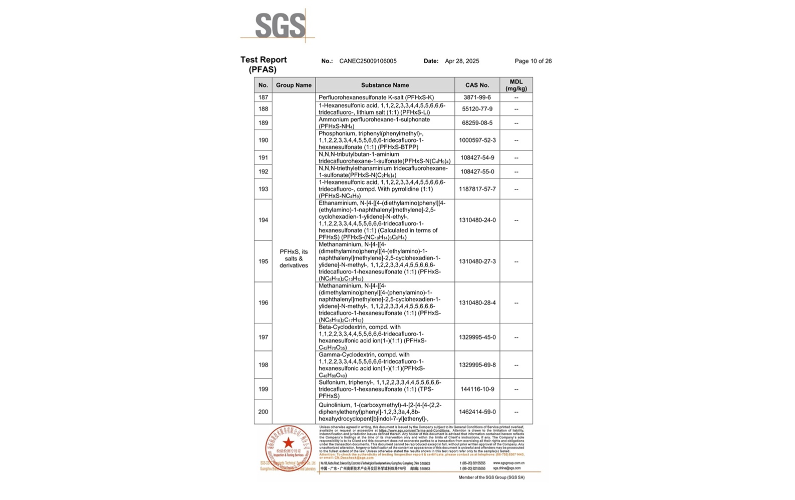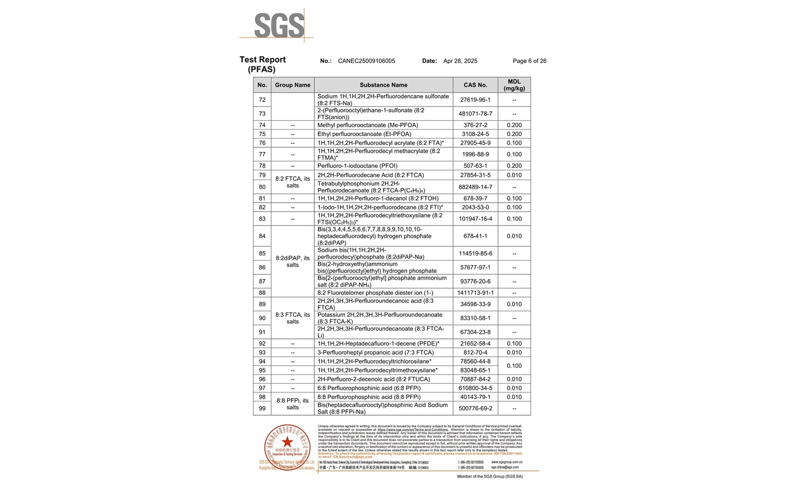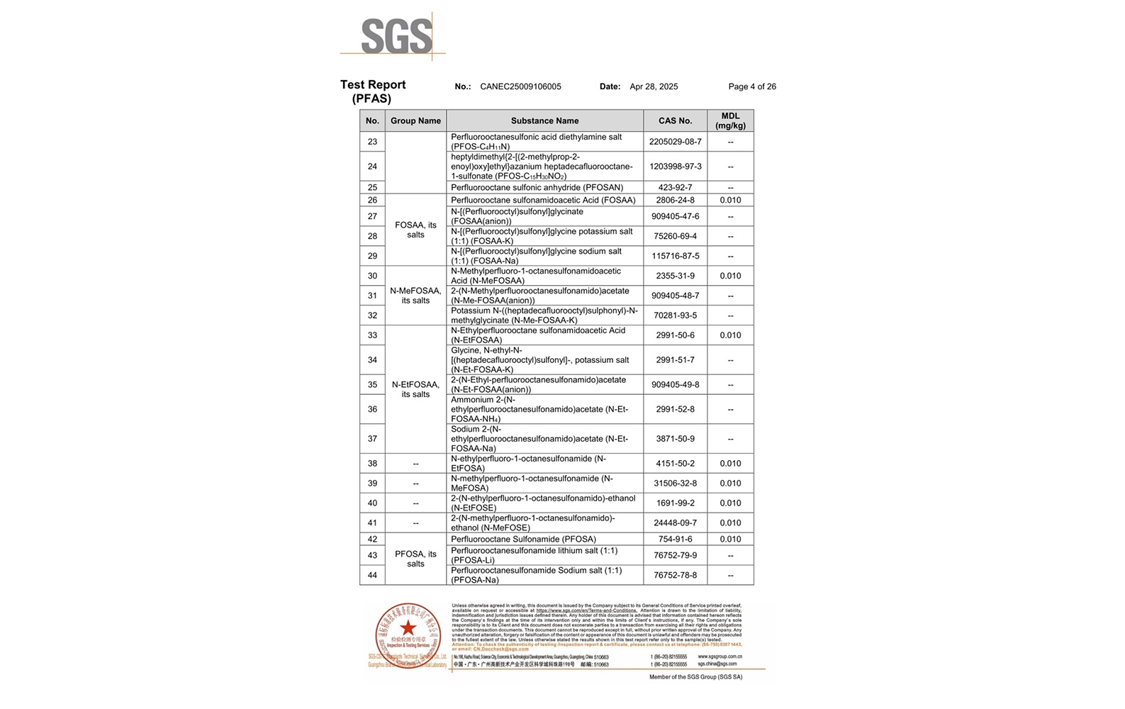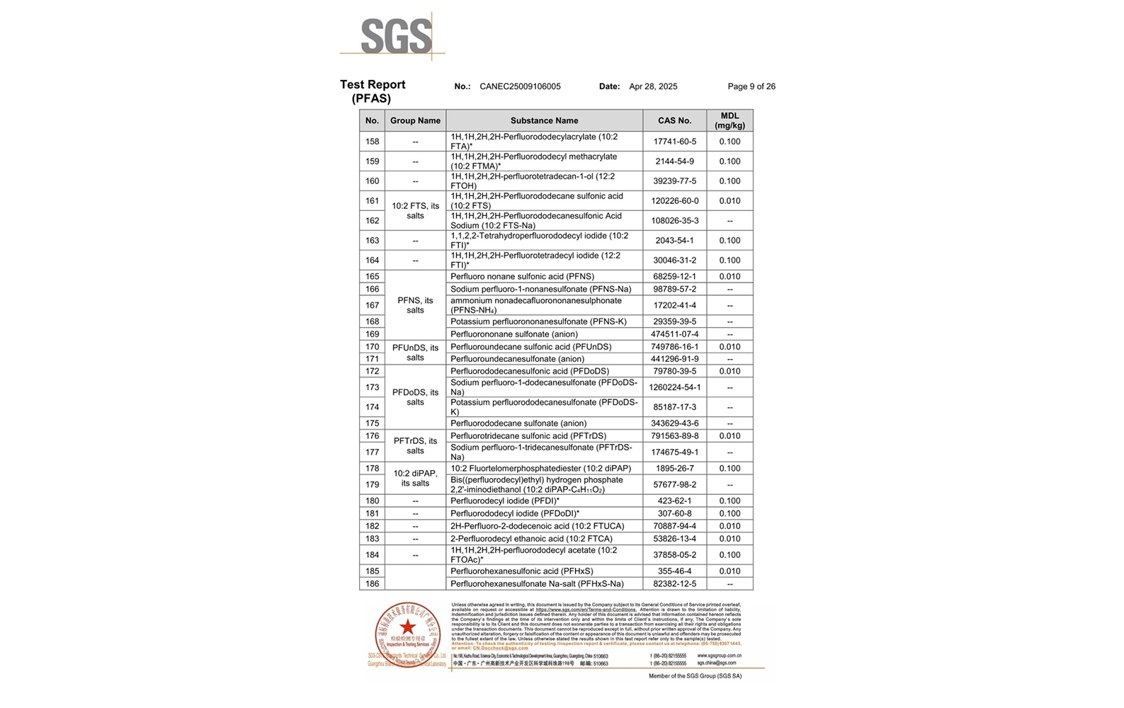 環(huán)保測試報告 PFAS CANEC25009106005